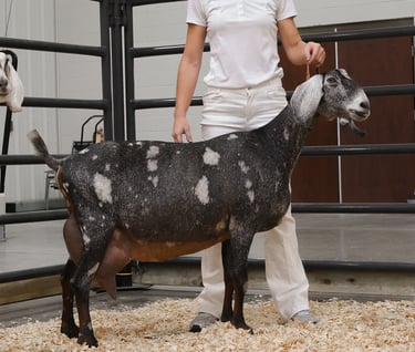 Looking for a friendly and beautiful goat to be your perfect companion? Look no further! Our Nubian goats at Sandhill Oaks Farm are not only great pets but also amazing home milkers and competitive in the show ring. We carefully breed and raise our goats to have the best temperament, conformation, and overall quality. Whether you're looking for a loving pet, family milk provider, or a show competitor, our goats will exceed your expectations.