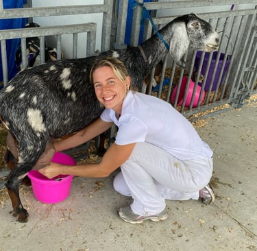 After moving to Florida, the herd was re-named "Sandhill Oaks Farm" and we bought our first show quality goat, Minerva (Fischer FF Prof McGonagall). She was shortly followed by the purchase of the doe who became our show herd Matriarch, Paradise Farms Blueberry.