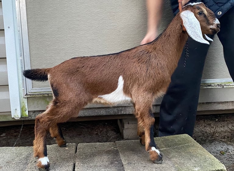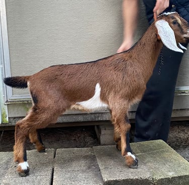 Click the link to go to the page of her retained doeling, Sandhill Oaks DD Galinda who was sired by our herdisire, Blissberry CC Dance N' The Dark.