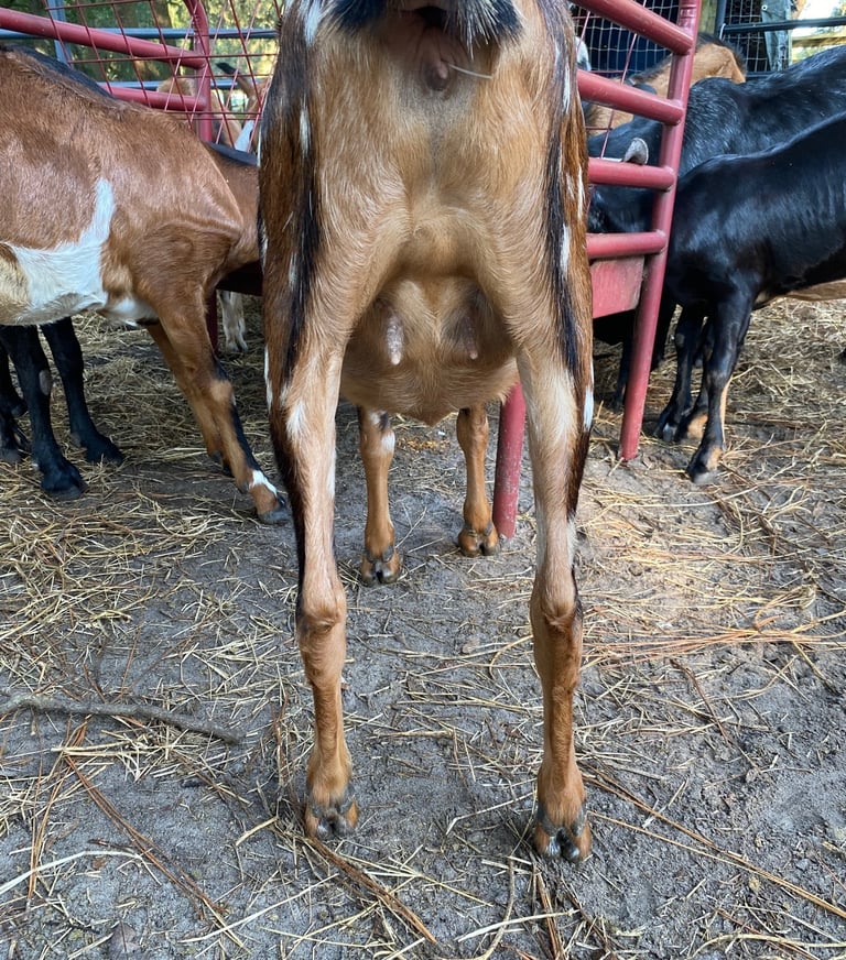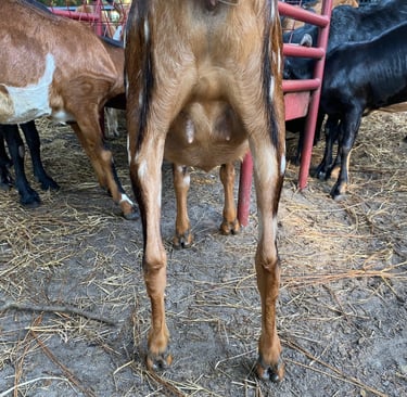 Zombie was our first keeper doeling from our show goat line. She was a little smaller as a kid and so was not bred her first year. We are excited to see her udder finally after all this time!